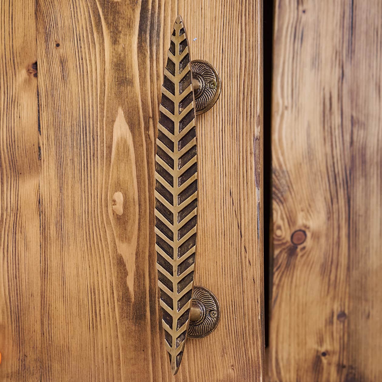 Make an impression with this luxurious door pull made from brass crafted in the shape of a long leaf.