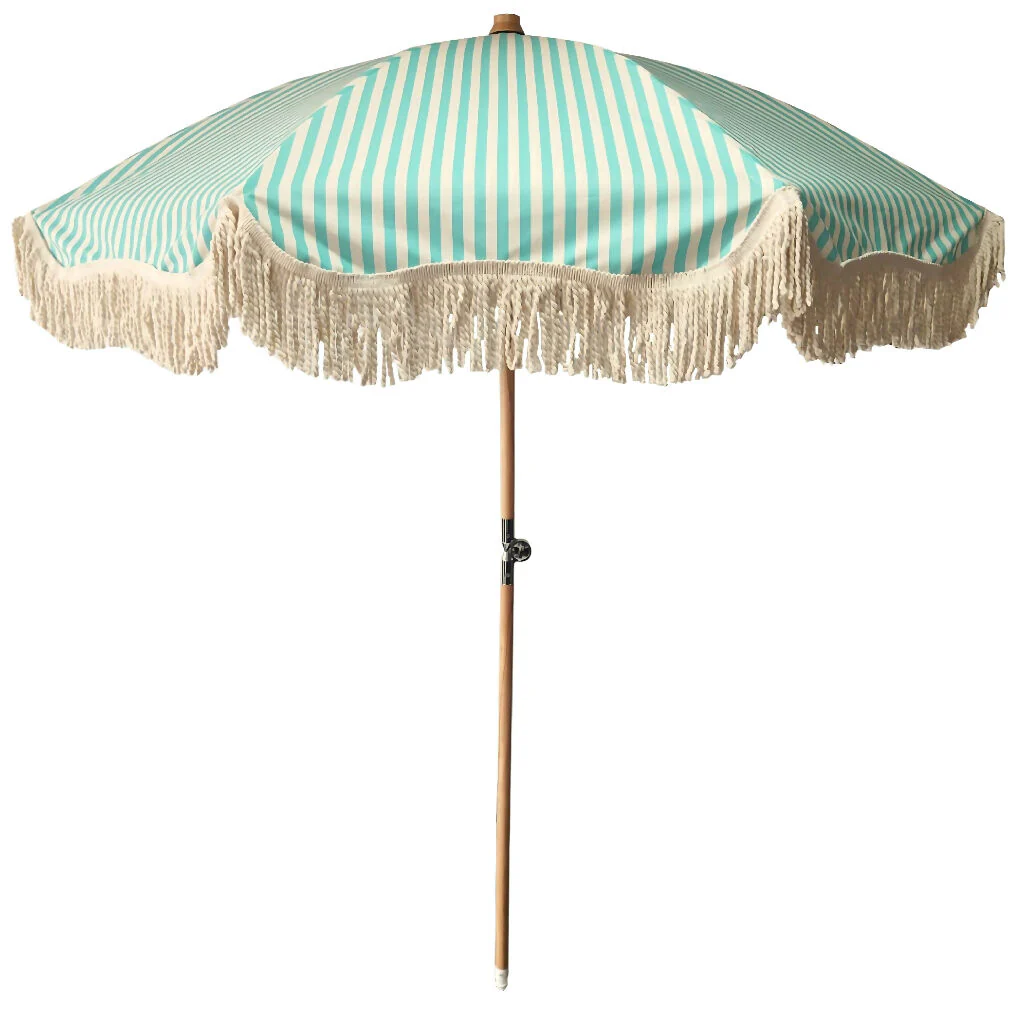 Aquamarine/Antique White Stripe Large Tassel Fringed Outdoor Parasol