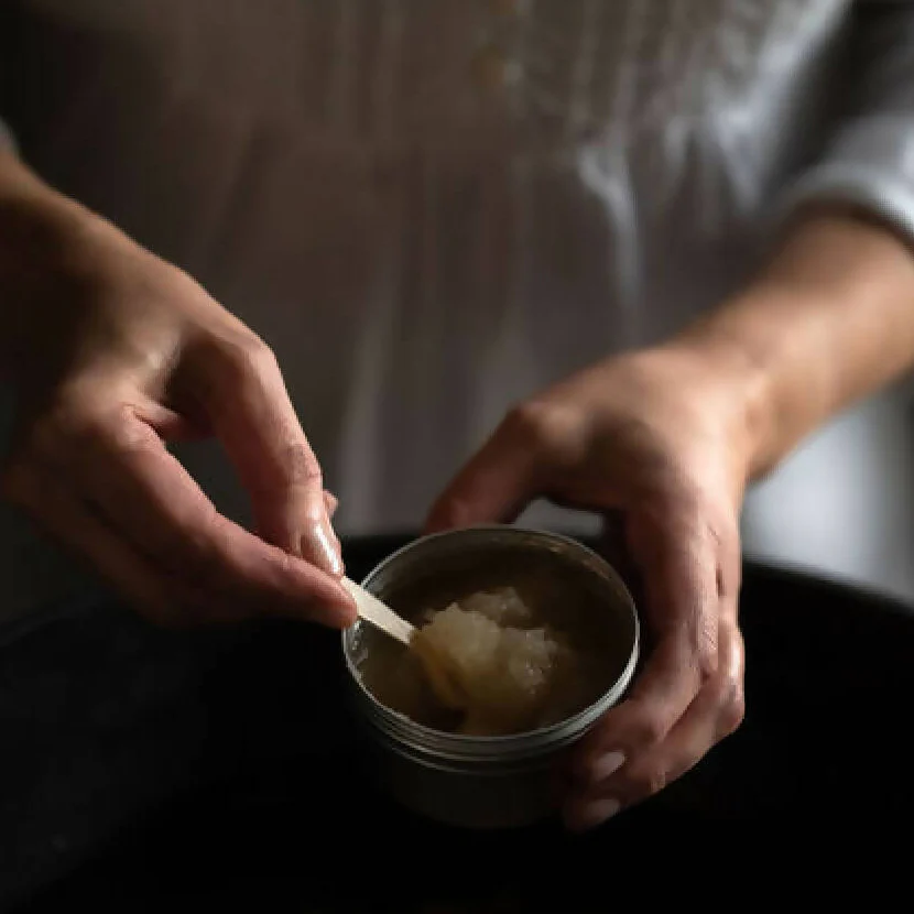 Beautifully boxed, our Hand Scrub will arrive with a blend card and our signature wooden spoon, which provides the perfect measure of loveliness needed to nourish your hard working hands.