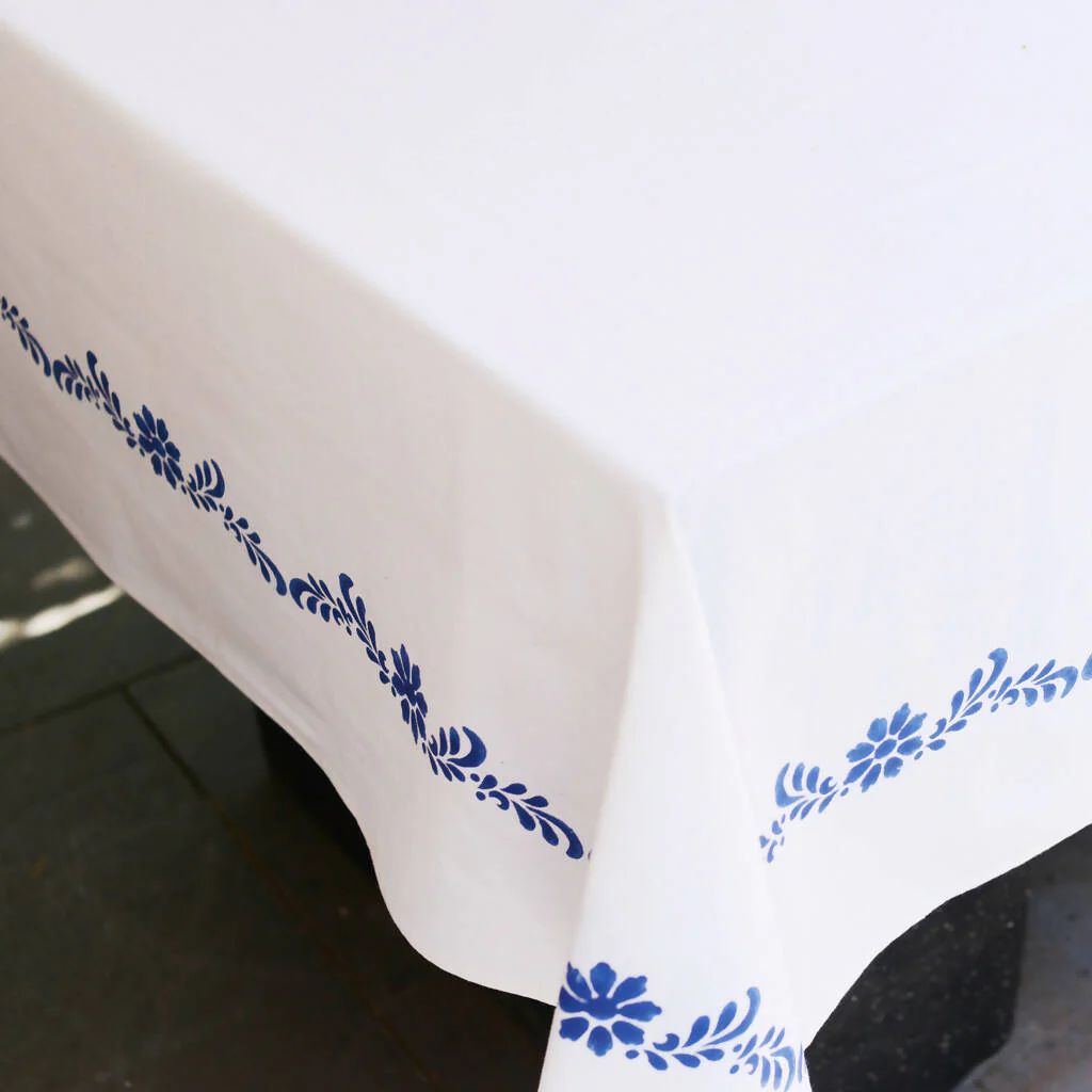 Blue & White Garland Tablecloth