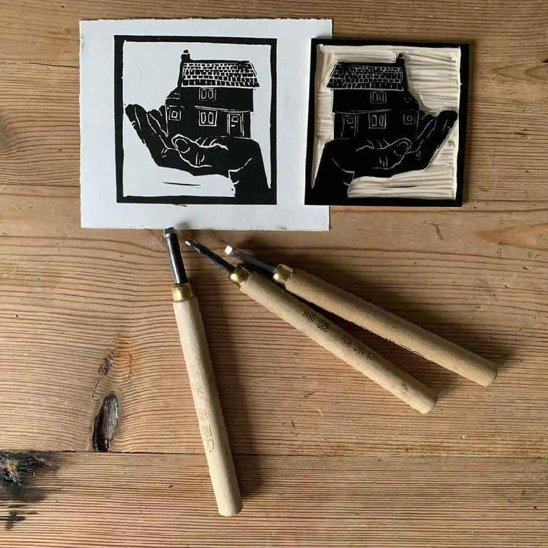 Bouclé 'House in Hand' Hand-Printed Card