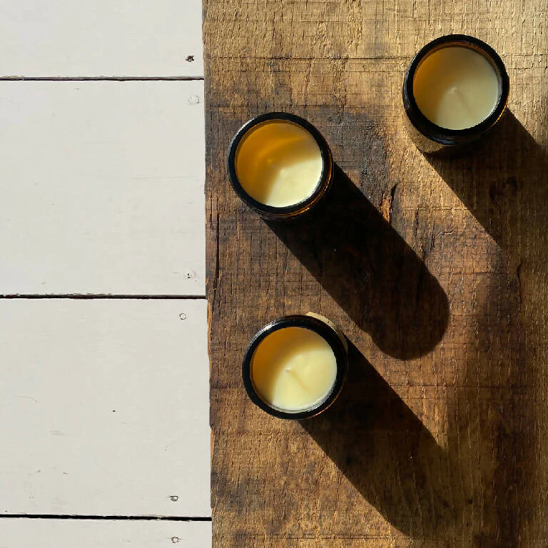 The candles are beautifully presented in a recycled box, hand-stamped and filled with recycled crinkle cut card. Finished with a jute tie and a dried botanical, making it a perfect choice for easy gifting.