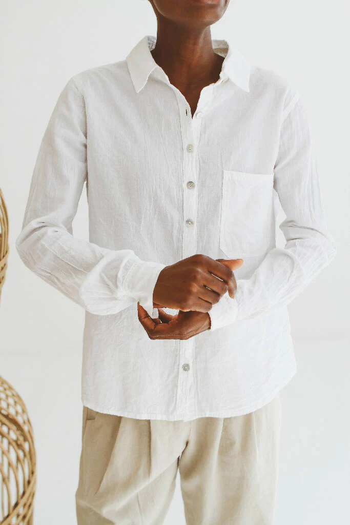An exceptional women’s cotton shirt, and wardrobe staple, that has been ethically made in Cape Town by Just Cruizin Clothing. The cotton needs little or no ironing – ideal for taking on holiday or travelling in too – unless you prefer to iron the natural creases out!