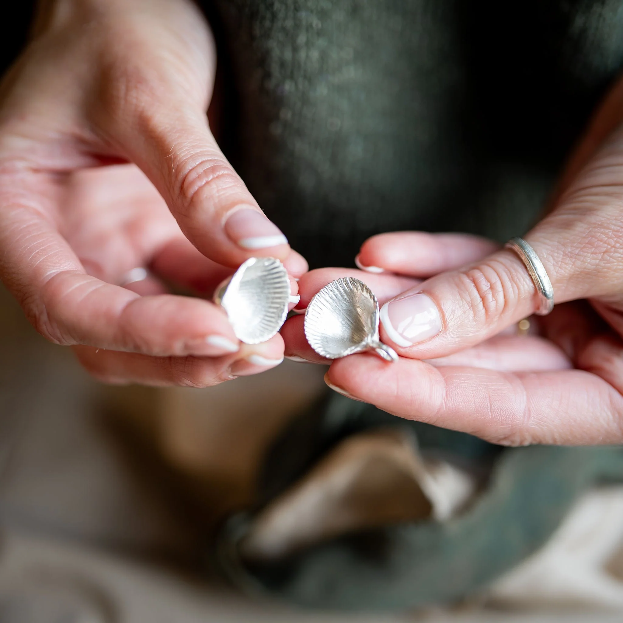 Gathered from the lapping shores of a British beach, this beautifully textured closed clam shell has been cast in two halves, then fused together to create a permanent capsule. A special way to remember treasured memories by the sea. Over dozens of beach finds, I was drawn to cast this shell because of its symmetry and its texture.