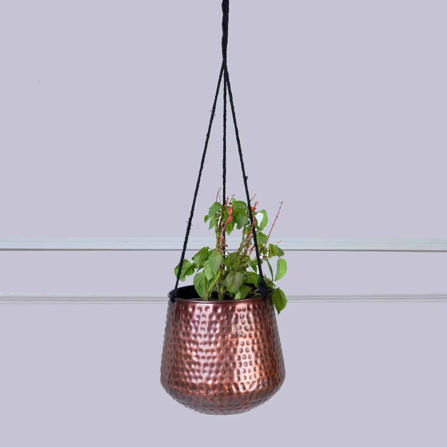 Our dark copper finish hanging planters are the perfect addition to any indoor or outdoor space.