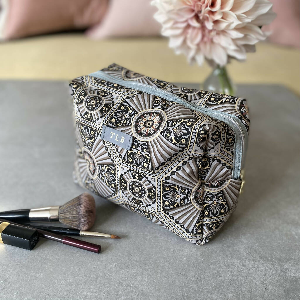 Cosmetic Bag with Personalised Leather Detail