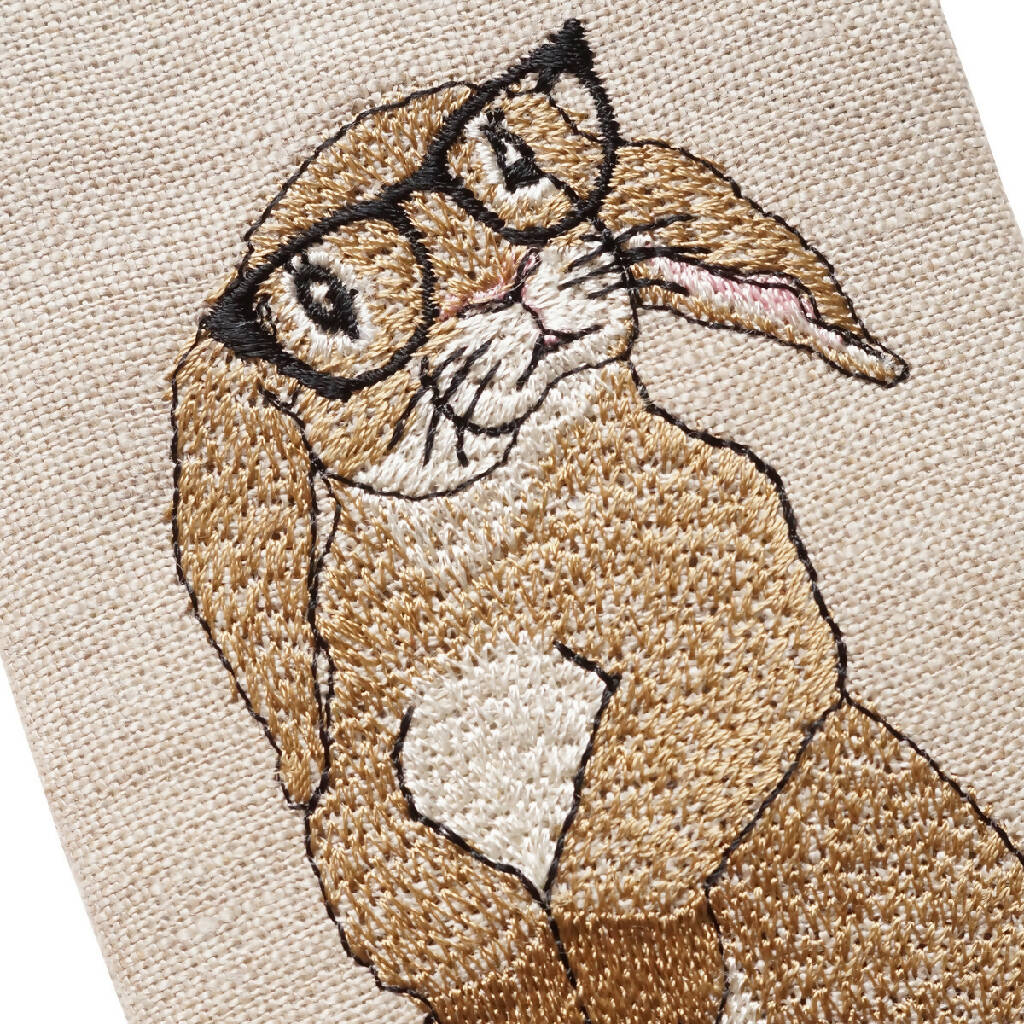 Perfect for an animal or nature lover, this fabric case is beautifully embroidered with a cheeky little rabbit modelling his own pair of trendy specs. A great gift for any member of the family, this case has a snap top fastening and will keep your glasses safe and scratch free.