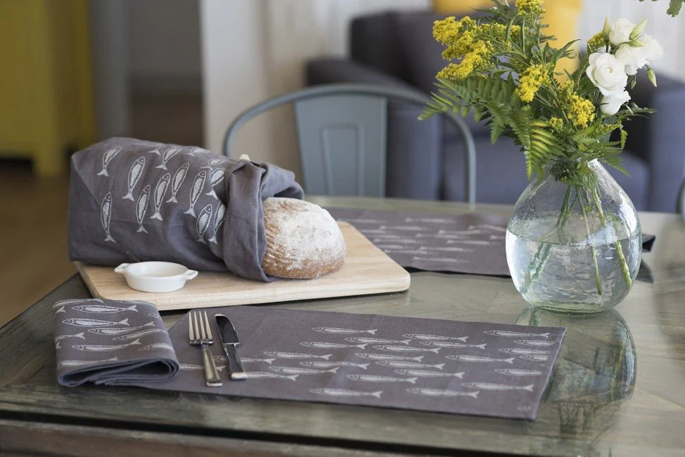 Fish Napkins Hand Printed Linen Set of Two
