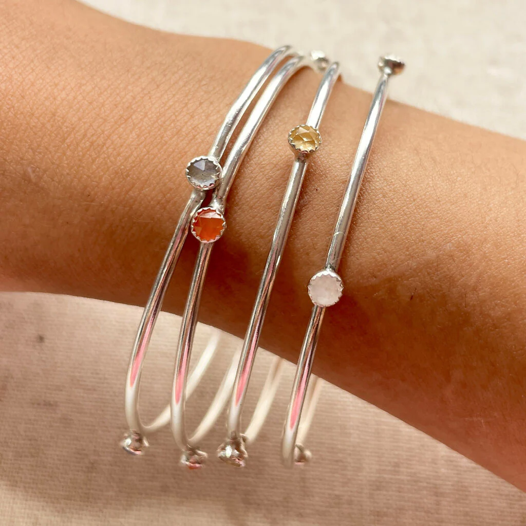 Gemstone Stacking Bangles recycled SIlver Bracelet