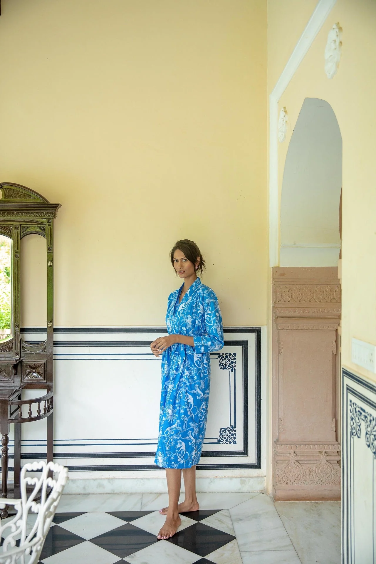 Made in pure cotton poplin made in a high 200 thread count. There are two deep pockets and waist-tie.