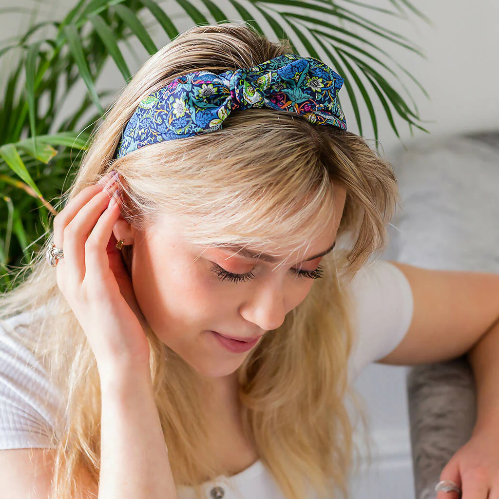 Complete your look with this Liberty print side bow headband. Handmade in a Liberty classic, the Strawberry Thief print. This headband has been designed with all-day comfort in mind, making it the perfect accessory for any occasion.