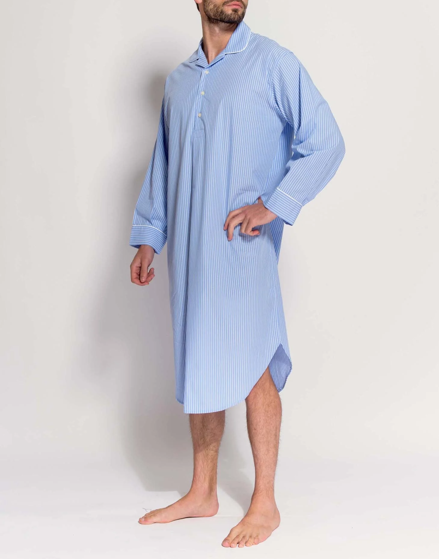 Men's Crisp Cotton Nightshirt – Sky Blue & White Stripe