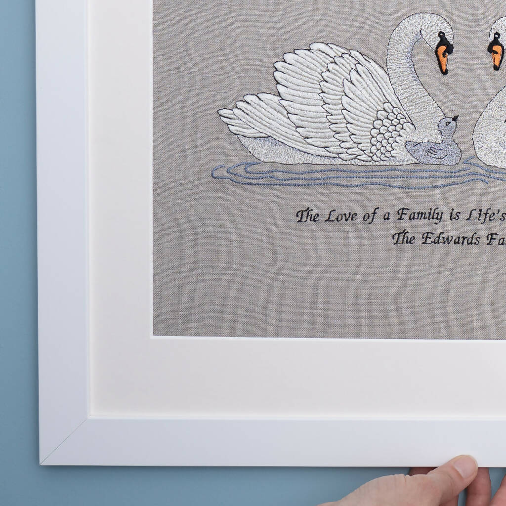 Personalised Embroidered Swan Family Artwork