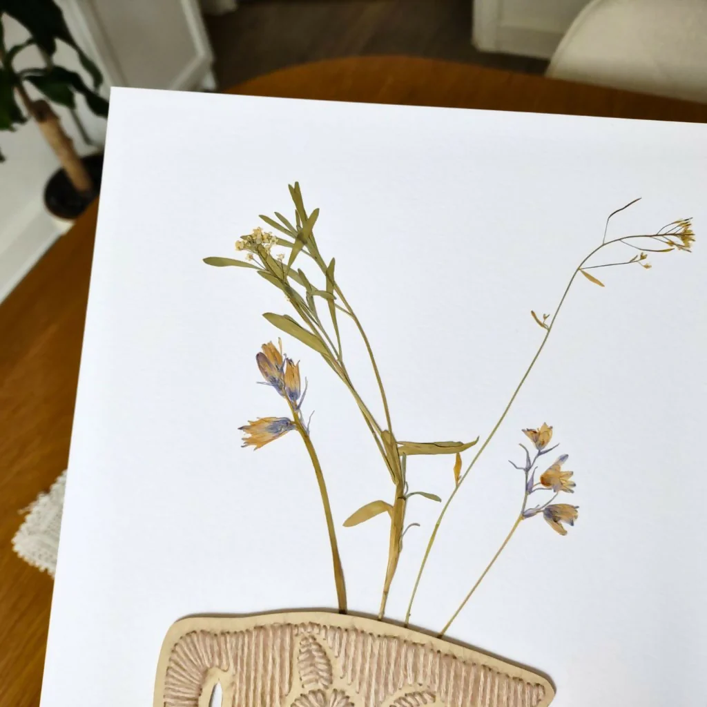 Do you love pressed flower art? If so, you’ll love this jug of dried wild flowers that were pressed using traditional methods.