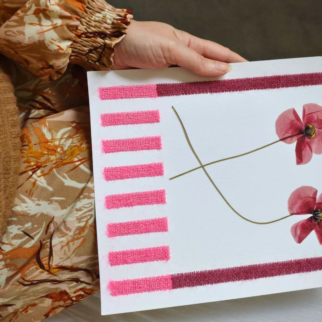 Do you love poppies, and stripes? If so, you’ll love this hand embroidered giclee print of pressed poppies.