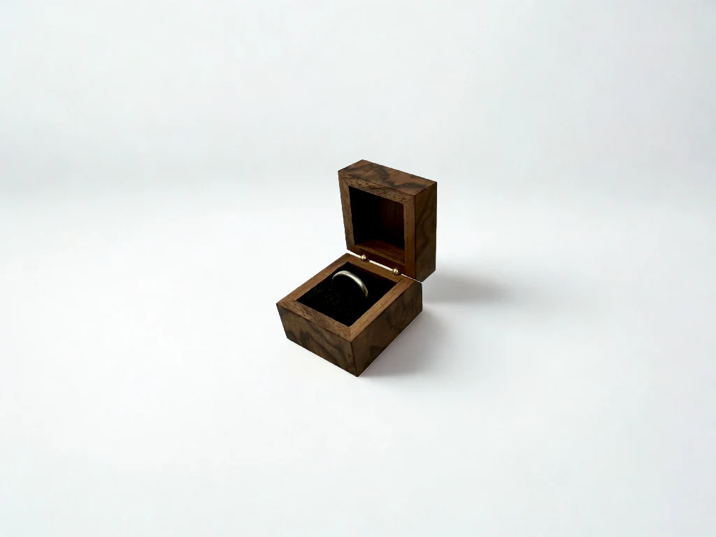 A beautiful ring needs a beautiful box for your loved one. This handcrafted burr walnut ring box is the perfect way to present the ring/rings for a special occasion.