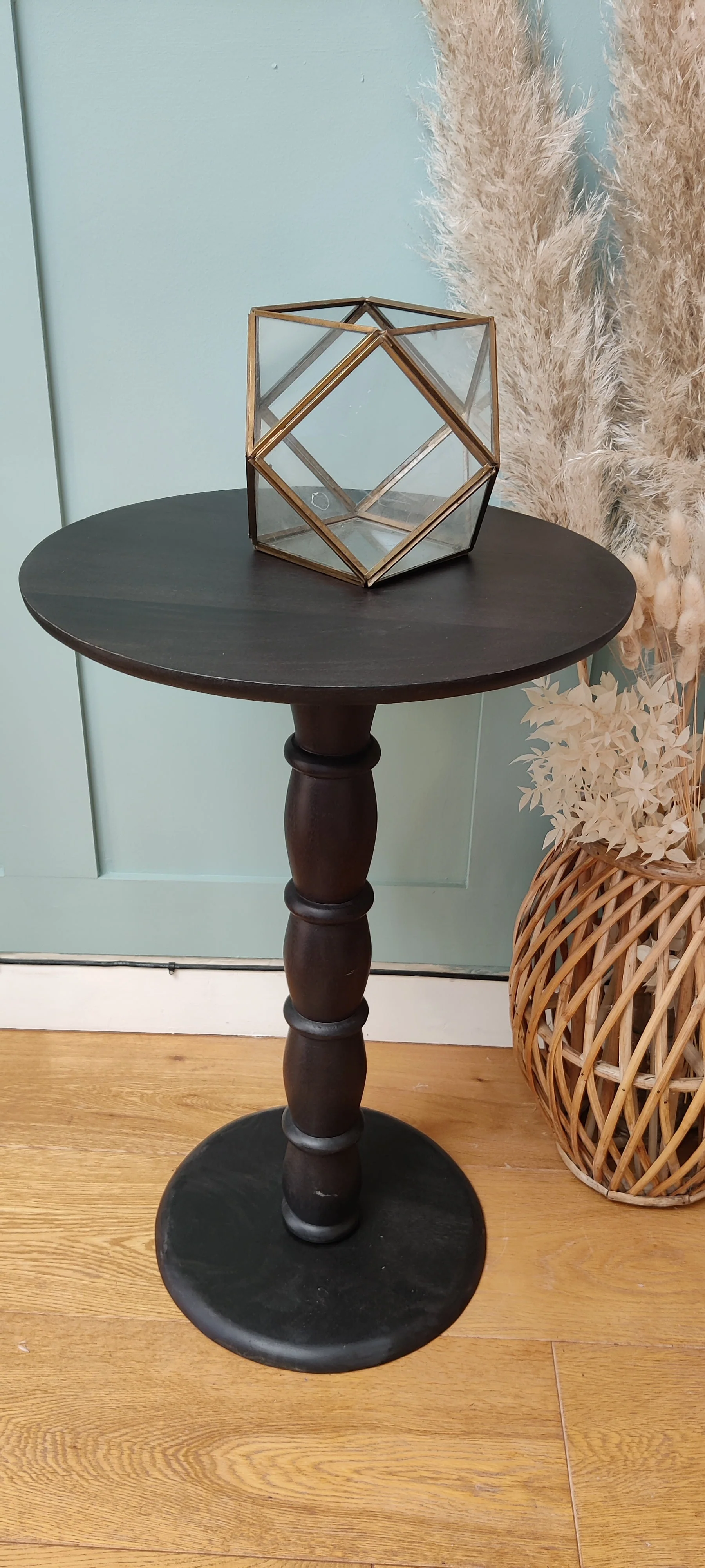 Round Black Mango Wood End Table