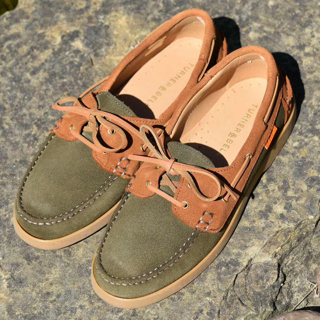 Our colourful take on the classic deck shoe, Salcombe comes in a choice of 4 beautiful suede colours, Turquoise, Pink, Red and the gorgeous Khaki, all contrasting with Tan suede facings and functional leather lace. Made in Spain and fully leather lined, this hand-made moccasin is one of our very favourites. So very comfortable.