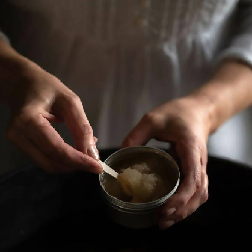 Beautifully boxed, our Hand Scrub will arrive with a blend card and our signature wooden spoon, which provides the perfect measure of loveliness needed to nourish your hard working hands.