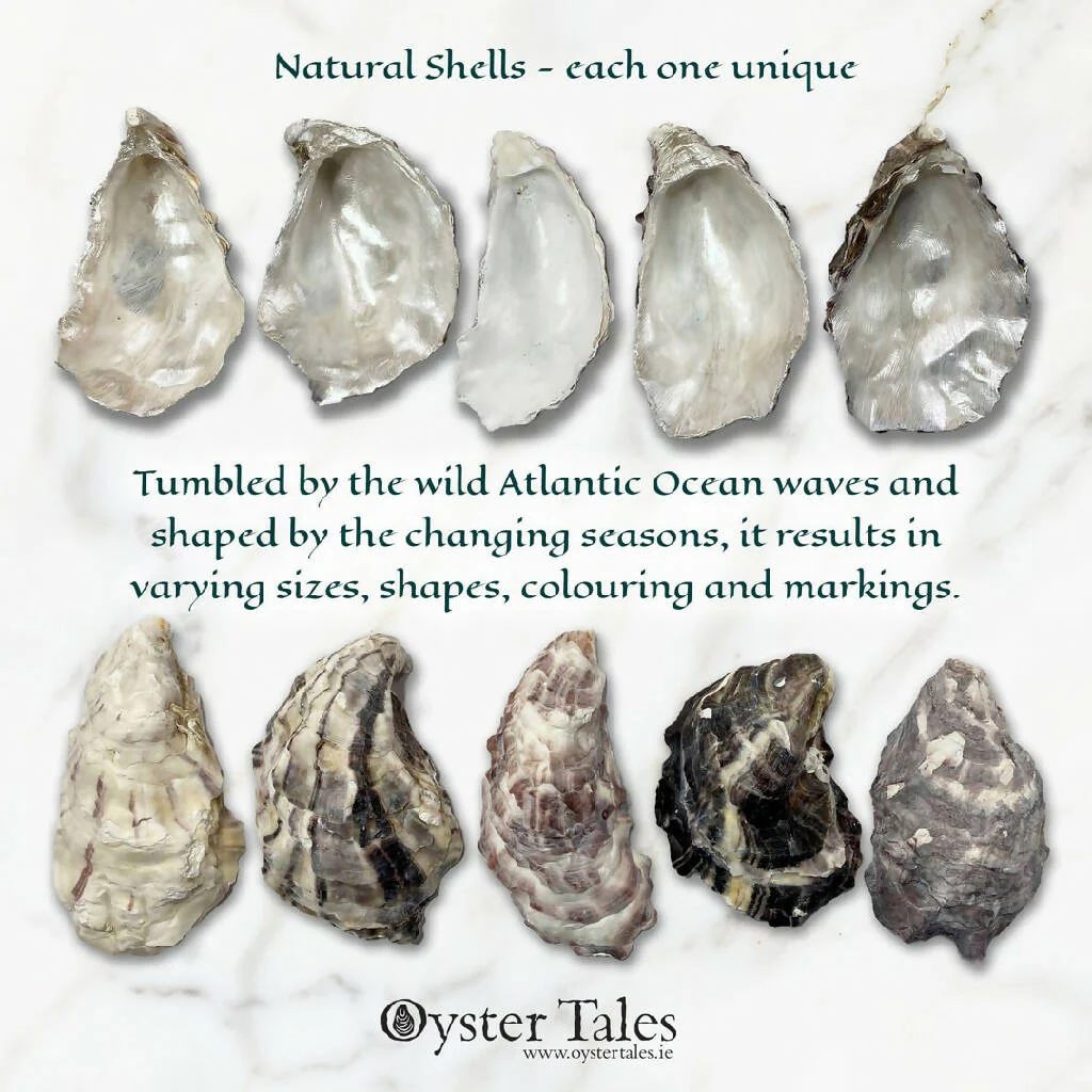 All are presented in an attractive eco-friendly gift/retail box with a window for easy viewing of the item. A removable sticker on the box states, “This is genuine Galway Bay Oyster Shell”.