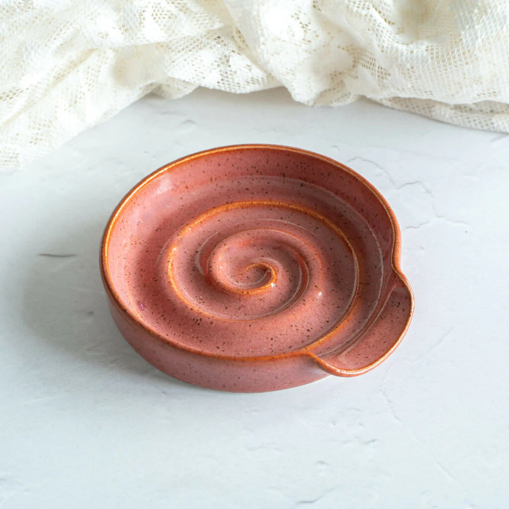 A wheel-thrown stoneware spoon rest with swirl detail. Each individually thrown then altered, this is the piece you didn’t realise you needed. Fits a standard size wooden spoon and is dishwasher safe for ease of cleaning. They make the perfect gift for foodies too!