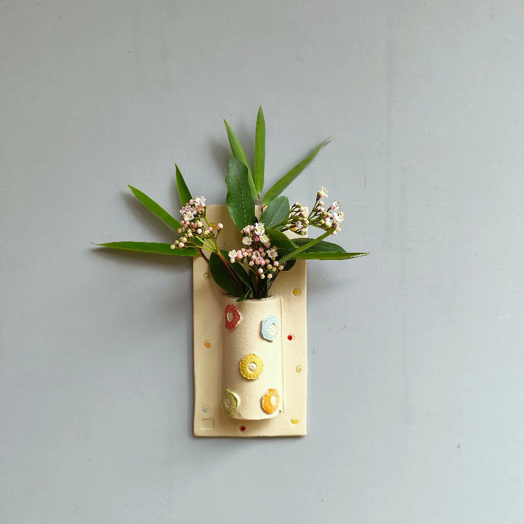 The vase is handmade from off-white stoneware clay to ensure it holds water. It is perfect for displaying fresh flowers, herbs, delicate trailing/hanging house plants, air plants or dried flowers.