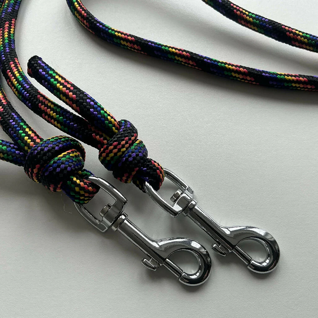 The leads are secured with strong knots (used by climbers) and are finished with a choice of a snap hook or carabiner clip.